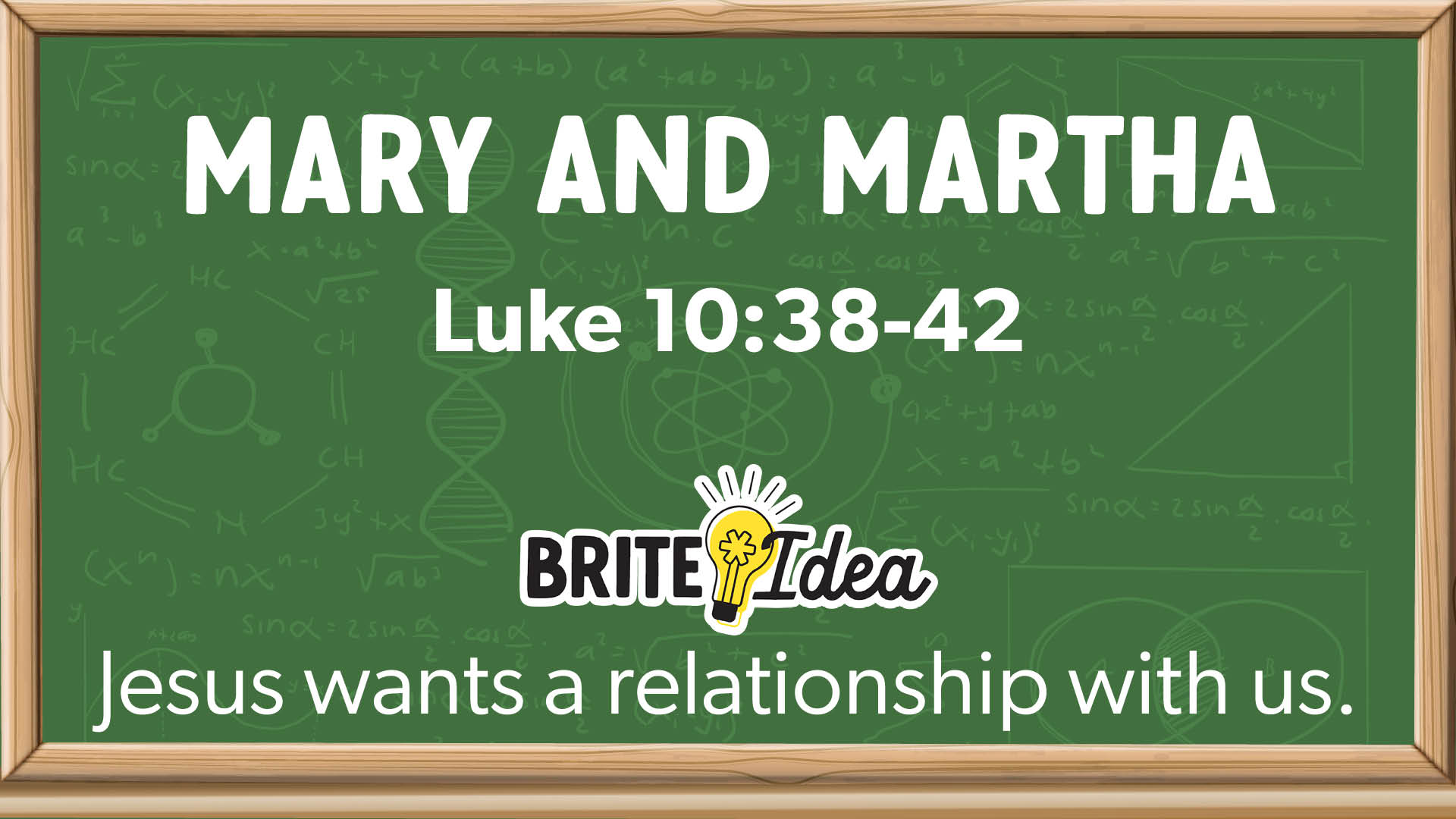 Martha welcomed Jesus into her home. While Mary sat at Jesus' feet, listening to His teachings, Martha became busy with chores. Martha became frustrated and asked Jesus to tell Mary to help her. Jesus told Martha that she was distracted by many things, but only one thing truly mattered—spending time with Him.