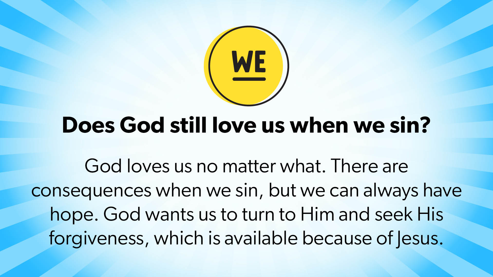 King Solomon married many foreign wives who led him to worship other gods, despite God’s warnings. God told Solomon He would divide the kingdom, leaving only a portion for his family because of the promise He made to David. Solomon’s son, Rehoboam, ignored wise counsel and made the people's burdens heavier, leading to rebellion and the division of Israel. God promised a future King who would unite His people. Even the wisest man in the world messed up. In Mark 10:18, Jesus said: “No one is good except God alone.” All people sin. We think, say or do things that disobey God. That is why Jesus came. Our sin separates us from God because He is holy and perfect. But He loves us so much that He sent Jesus to us. Jesus died and rose again, making a way for us to be forgiven and to have a relationship with God forever.