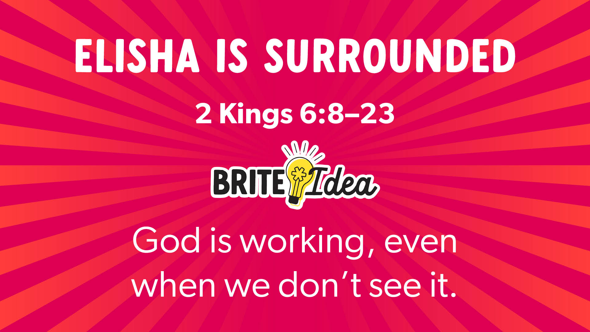 Elisha’s servant felt overwhelmed by the surrounding army until God opened his eyes and he could see God’s chariots of fire. There are many times in life when we may feel surrounded and defeated. In Ephesians 1:18, Paul said he prayed that the people would have the eyes of their hearts enlightened—or opened—so that they could see the hope they have in Jesus. Because Jesus defeated death and made a way for us to be made right with God forever, we are never alone. He gives us hope that is greater than every circumstance.